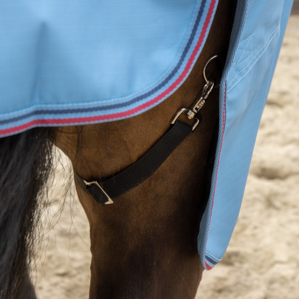 Outdoordeken met polyester voering. Naadloos op de rug, geen vulling. Voorzien van loopsplit en staartflap. Dubbele snelsluiting, kruissingels en afneembare bilkoorden. Gevouwen coupenaden, getapete zijnaden. Waterdichtheidwaarde: 3000wr/wp, ademend vermogen 3000 mvp.