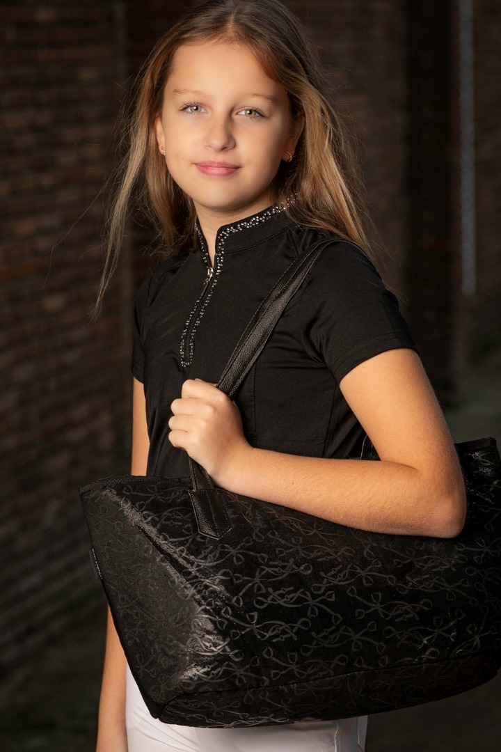 Leuke gevoerde multifunctionele tas met een allover equestrian logo-patroon. Voorzien van een binnenvak met ritssluiting.