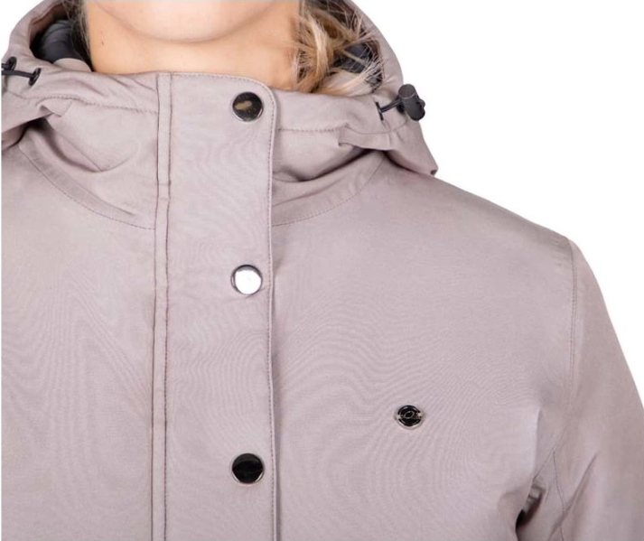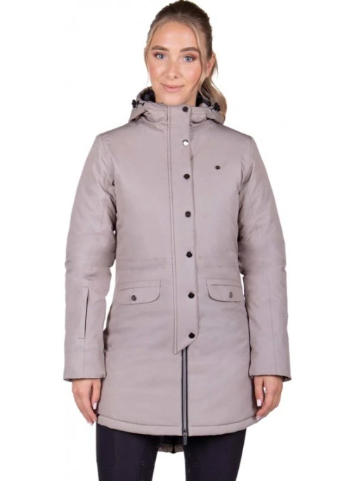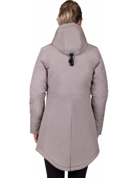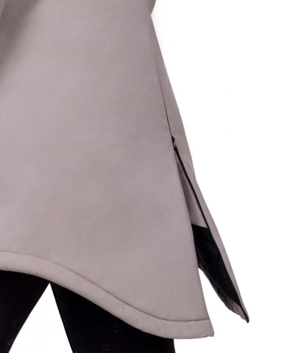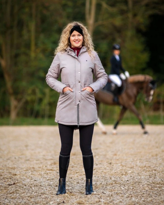 Winterjas Linde; met deze lange gewatteerde jas trotseer jij de koude winterdagen met gemak. De achterkant bevat een rits zodat deze open te ritsen is wanneer je op het paard stapt. De jas sluit altijd mooi aan door het trekkoord bij de taille, heeft elastische mouwafsluiting en de capuchon kan worden vastgezet tijdens het rijden.Het model op de studiofoto’s is 176 cm lang en draagt maat 36.