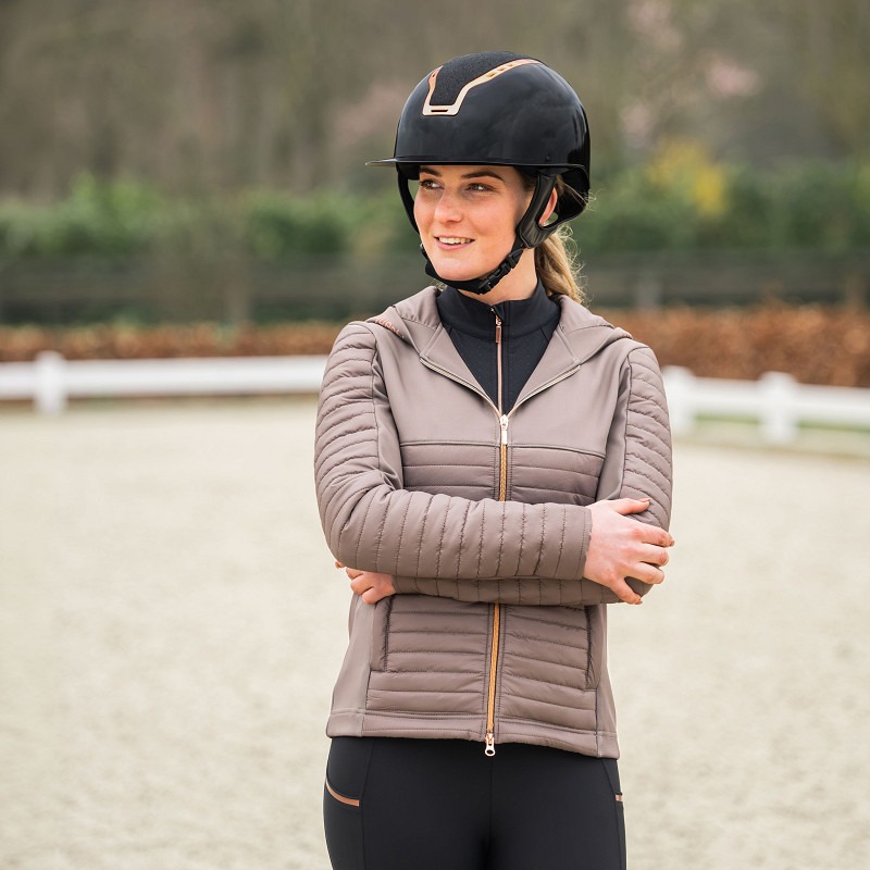 Puffervest uit hoogwaardig materiaal met roségouden details. Het vest beschikt over twee voorzakken met rits en Equestrian Pro logo tape rondom de capuchon. De combinatie van de twee stoffen zorgen voor een flatterende pasvorm.
