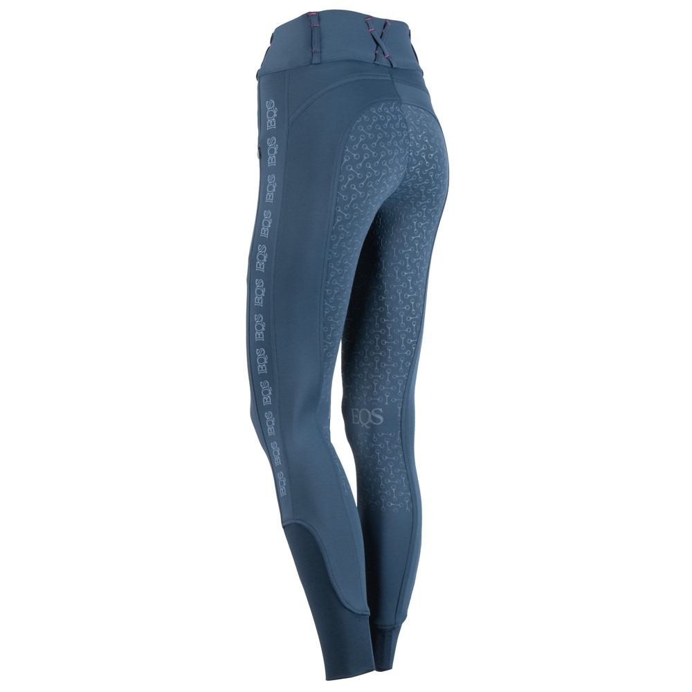 Zeer comfortabele en stretchy rijlegging met een brede, hoge tailleband met riemlussen met kontraststiksels, twee zakken met ritssluiting, EQS print aan de buitenzijde van je been. Verder een rondgenaaid zitvlak met een subtiele siliconenprint met bitjes voor extra grip in het zadel en een comfortabele elastische inzet rond de enkels.