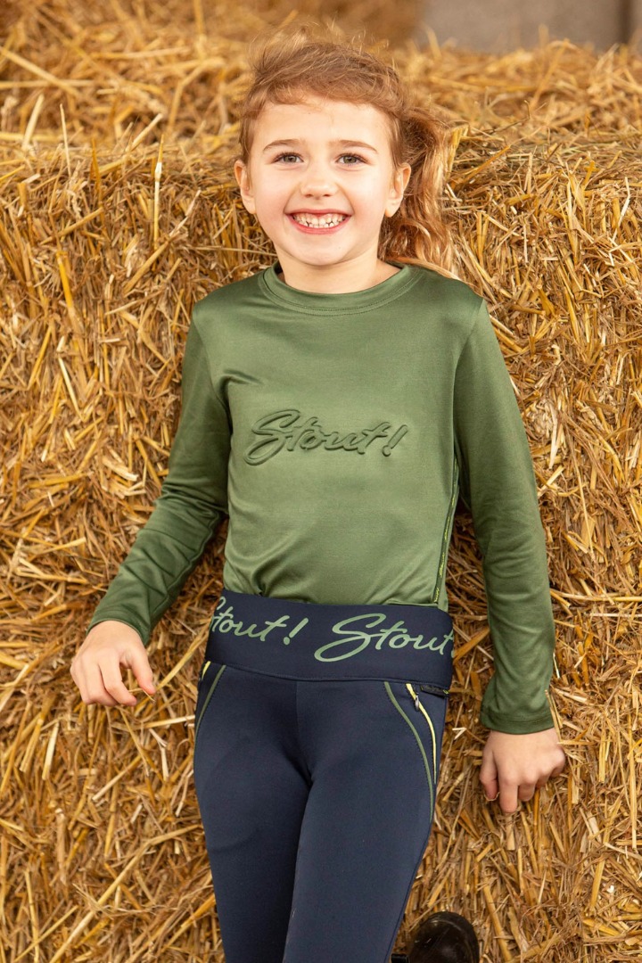 Shirt met lange mouw en ronde hals, STOUT! Logo op de borst en aan de linkerkant een band met STOUT! print erop.